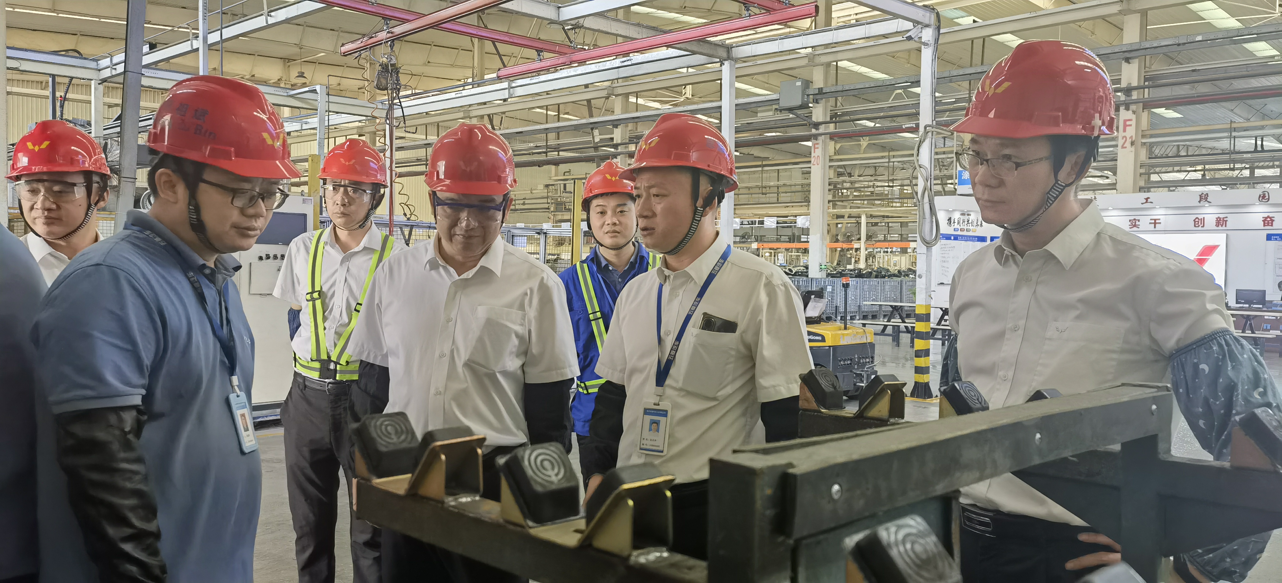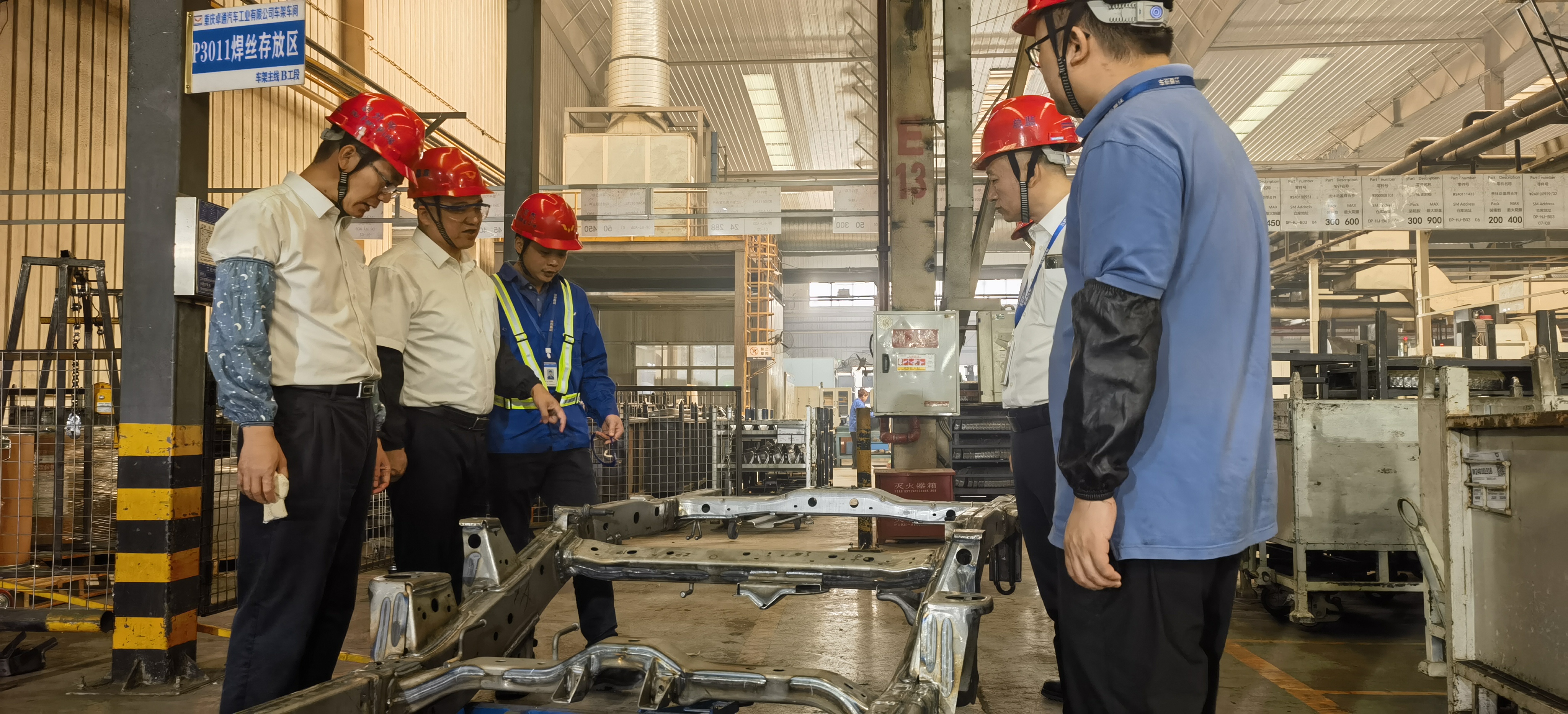 陳曉峰率隊走進車間現(xiàn)場,聽取基層一線聲音,詳細了解了車架等零部件的研發(fā)進度,詢問了電動主減線的構建進度,聽取了橋殼涂裝更改為電泳實現(xiàn)降本舉措,見證了重慶卓通“設備集成實訓中心”的正式揭牌,按下了CN110V后大梁自動化設備啟用鍵,對車間降本增效、設備集成、人才梯隊建設、工程管理技術工作表示了肯定。