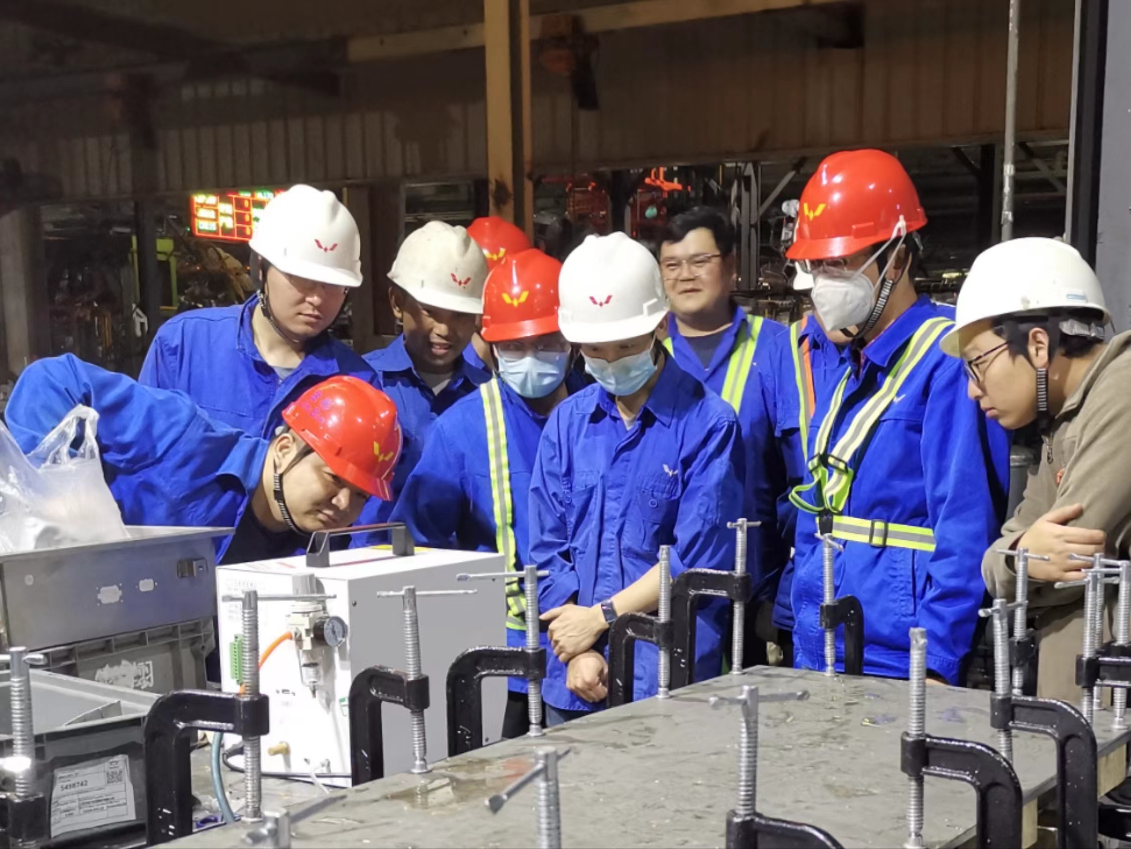 電池箱體、箱蓋還具有工藝鏈長、安裝尺寸及精度要求較高等制作難點(diǎn)。為快速響應(yīng)市場發(fā)展需求,重慶卓通聯(lián)動(dòng)五菱工業(yè)車身事業(yè)部,培養(yǎng)工程師團(tuán)隊(duì),緊急開發(fā)專用工裝夾具,在短時(shí)間內(nèi)完成了折彎、激光焊、氣密性檢測、噴塑/PVC、絲印/刷導(dǎo)電漆等工藝能力構(gòu)建。為應(yīng)對工藝鏈周期長而交付時(shí)間較短的痛點(diǎn),重慶卓通自主改造兼容現(xiàn)有自動(dòng)化生產(chǎn)線,實(shí)現(xiàn)自動(dòng)化焊接,提高生產(chǎn)效率。