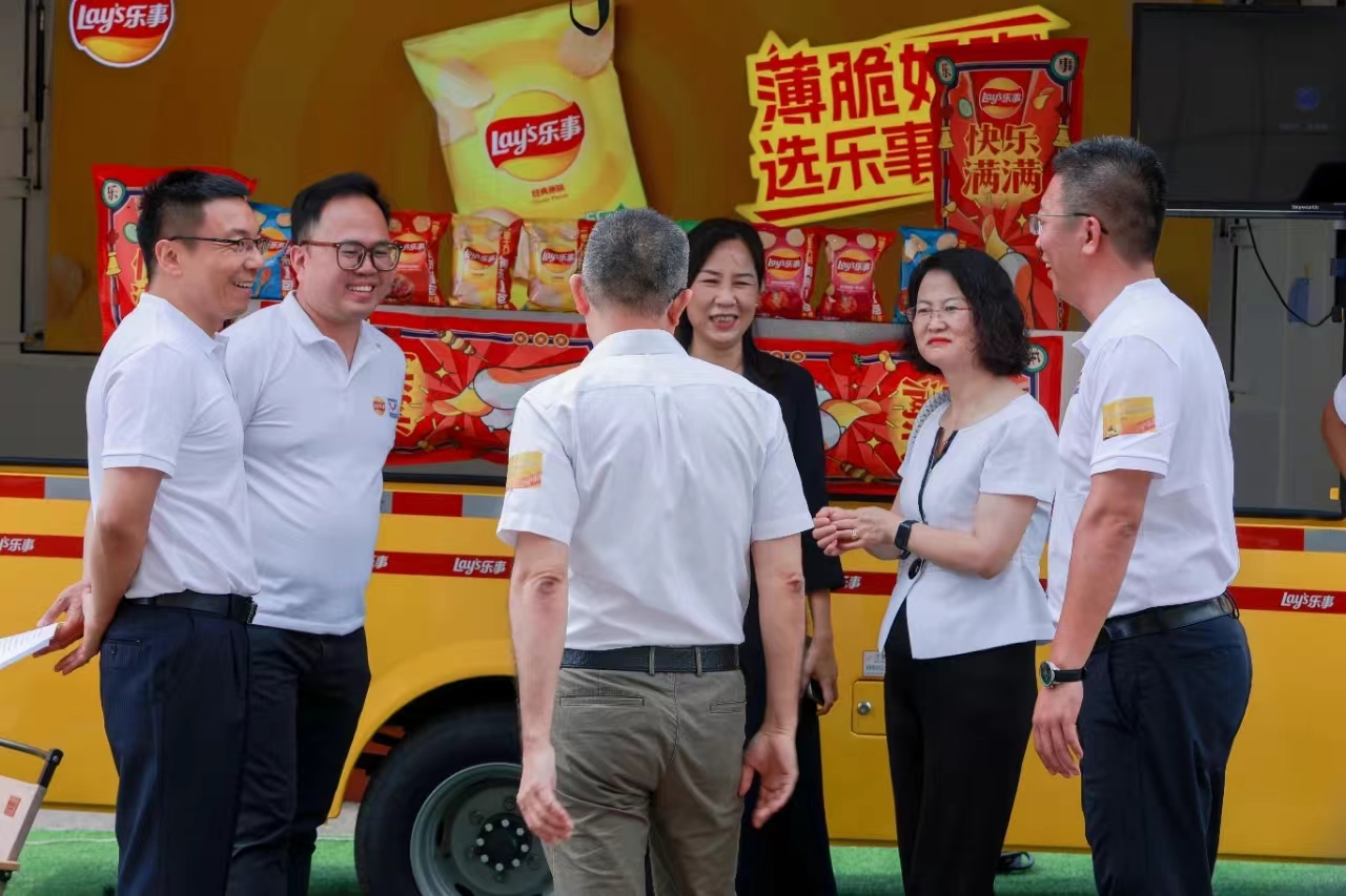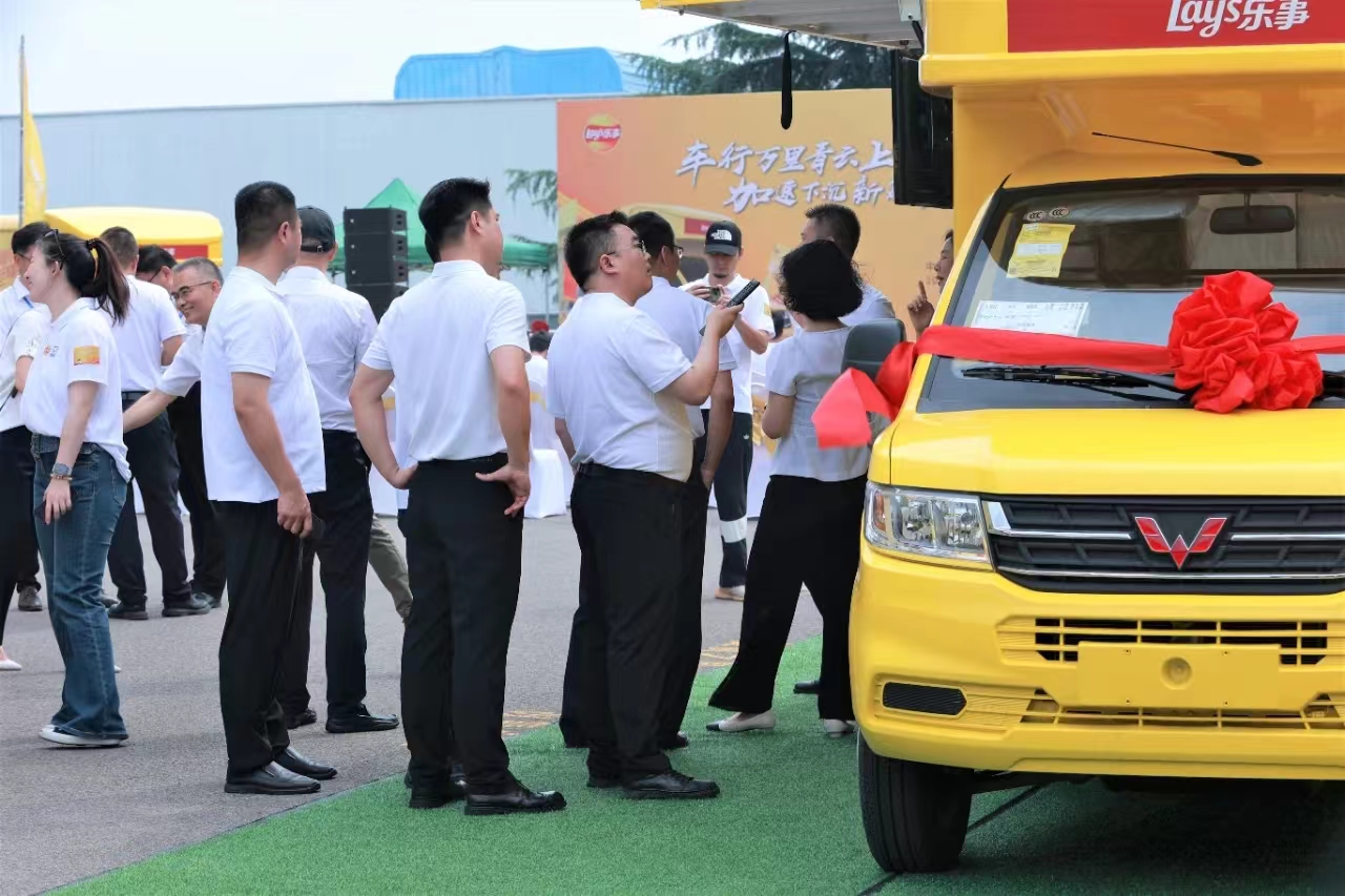 百事食品渠道發(fā)展部高級(jí)經(jīng)理訾東峰、青島市西海岸新區(qū)商務(wù)局副局長(zhǎng)肖玲、青島五菱專用汽車有限公司總經(jīng)理梁開榮等出席儀式,共同見證這一“樂事”。