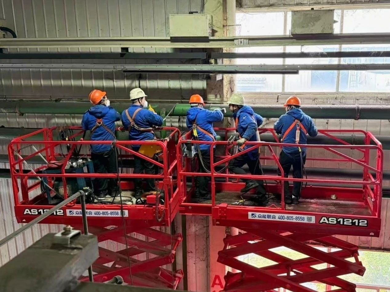 工人正在拆除原前圍板手工線葡萄架鋼架結(jié)構(gòu)