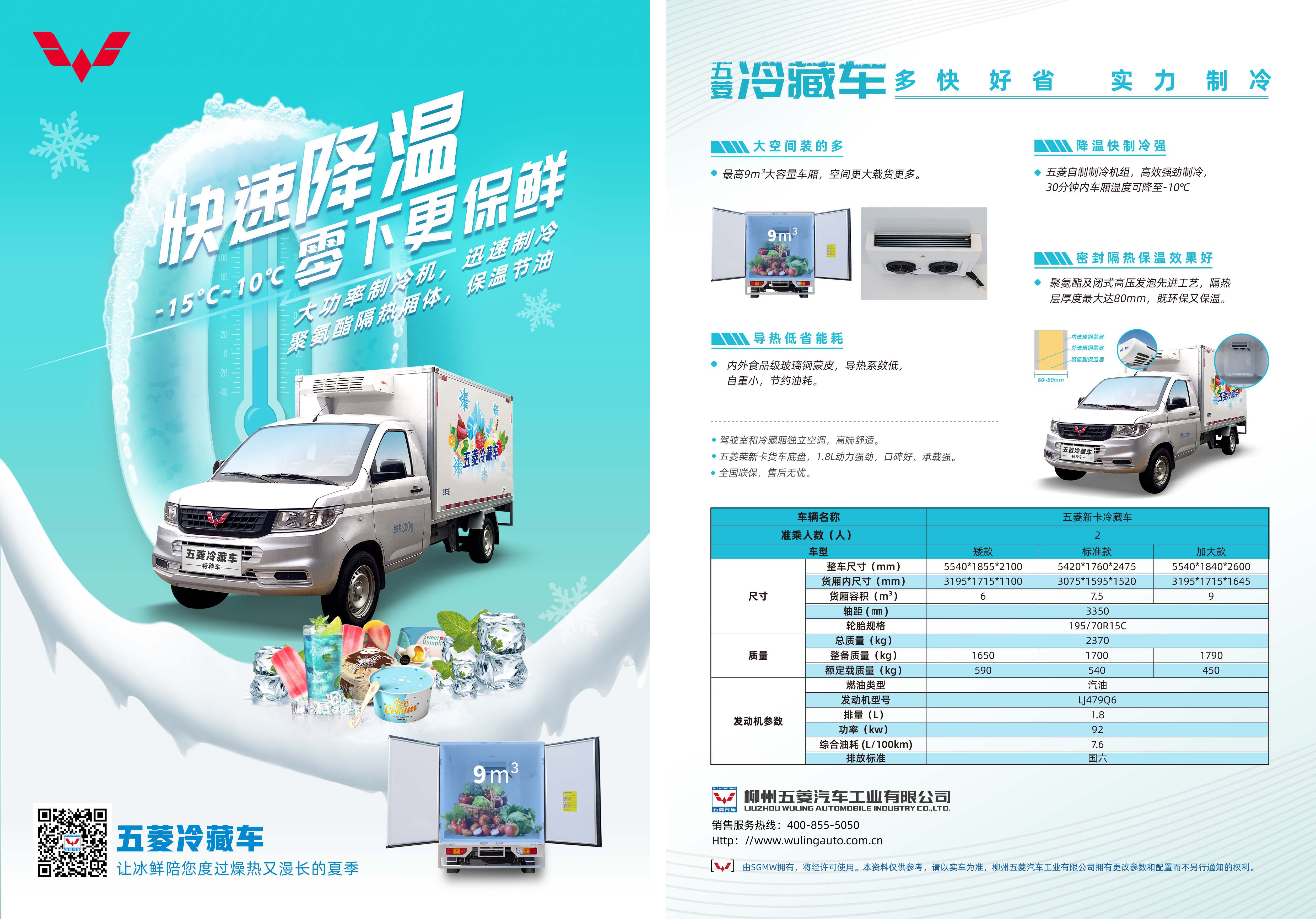 五菱榮光新卡冷藏車,快速降溫,零下更保鮮!