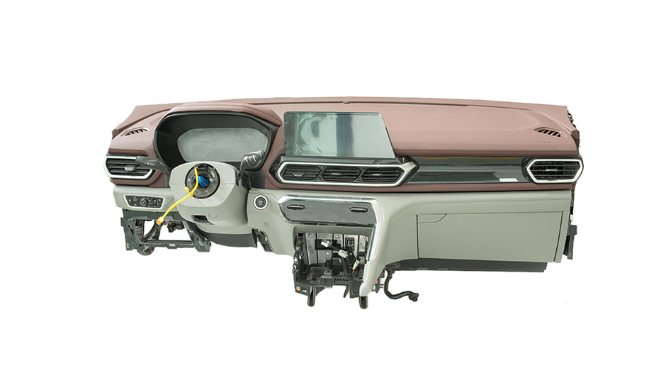 流線型一體化設(shè)計(jì),造型美觀大方,各種功能組件布局合理,操作簡易明了,根據(jù)不同車型的配置可裝配不同種類的儀表板大總成:基本型—藍(lán)灰色調(diào)標(biāo)準(zhǔn)型—套色,米黃主色調(diào)舒適型—米黃主色調(diào),仿桃木零件,多功能顯示屏。